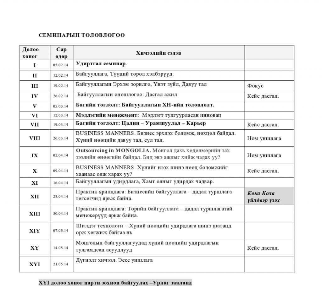 Хичээлийн хөтөлбөр 2014